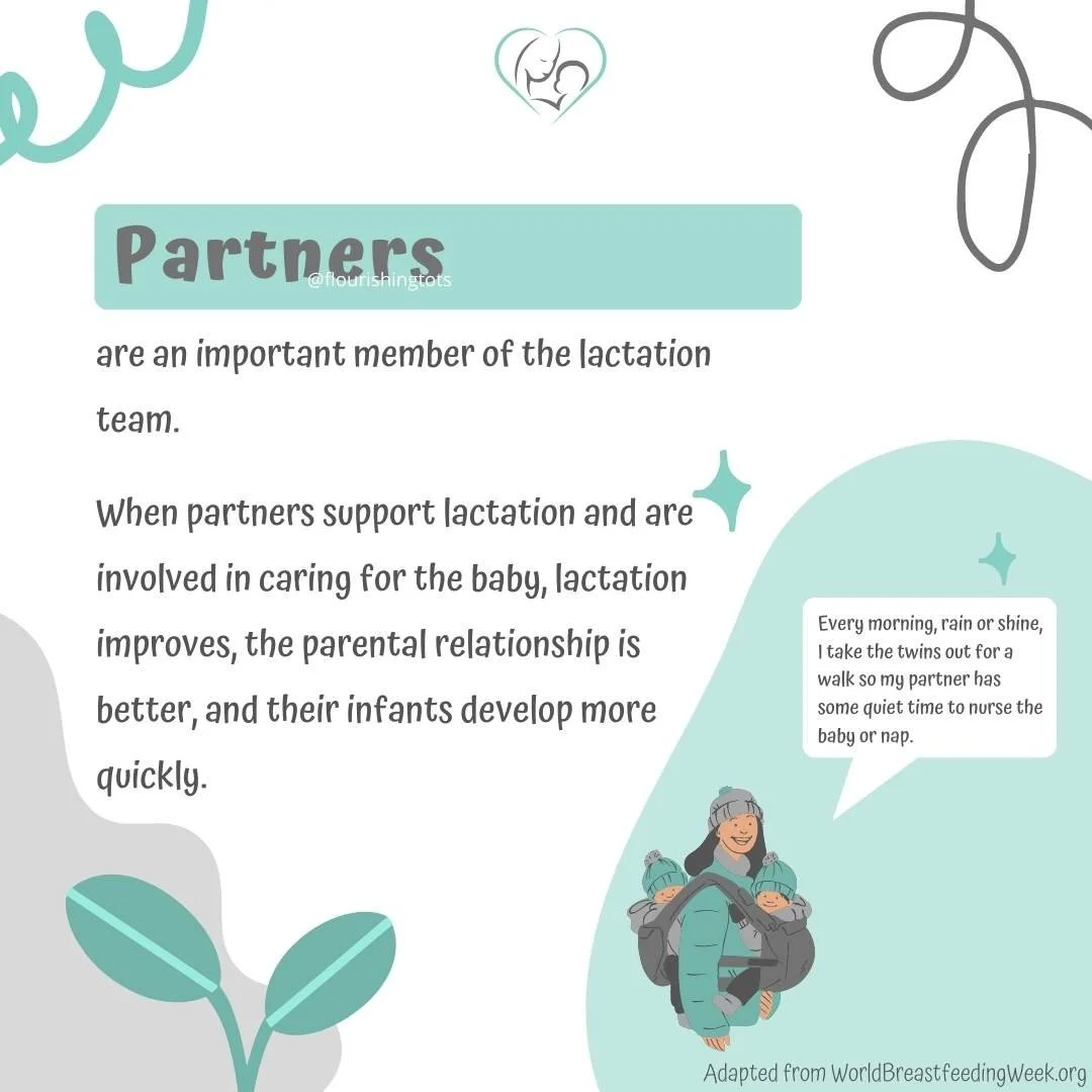 WABA understands that support from your partner and the people close to you is necessary. Per WABA, when partners support lactation and are involved in caring for the baby, lactation improves, the parental relationship is better, and their infants develop more quickly.