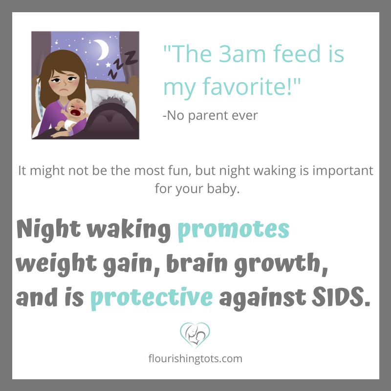 For parents, night waking sucks. It’s true. No one ever had a baby and looked forward to feeding their tiny creature at 3am. And 4. And 5. And 5:30. And 6. Try to look at it this way: night waking protects your baby.